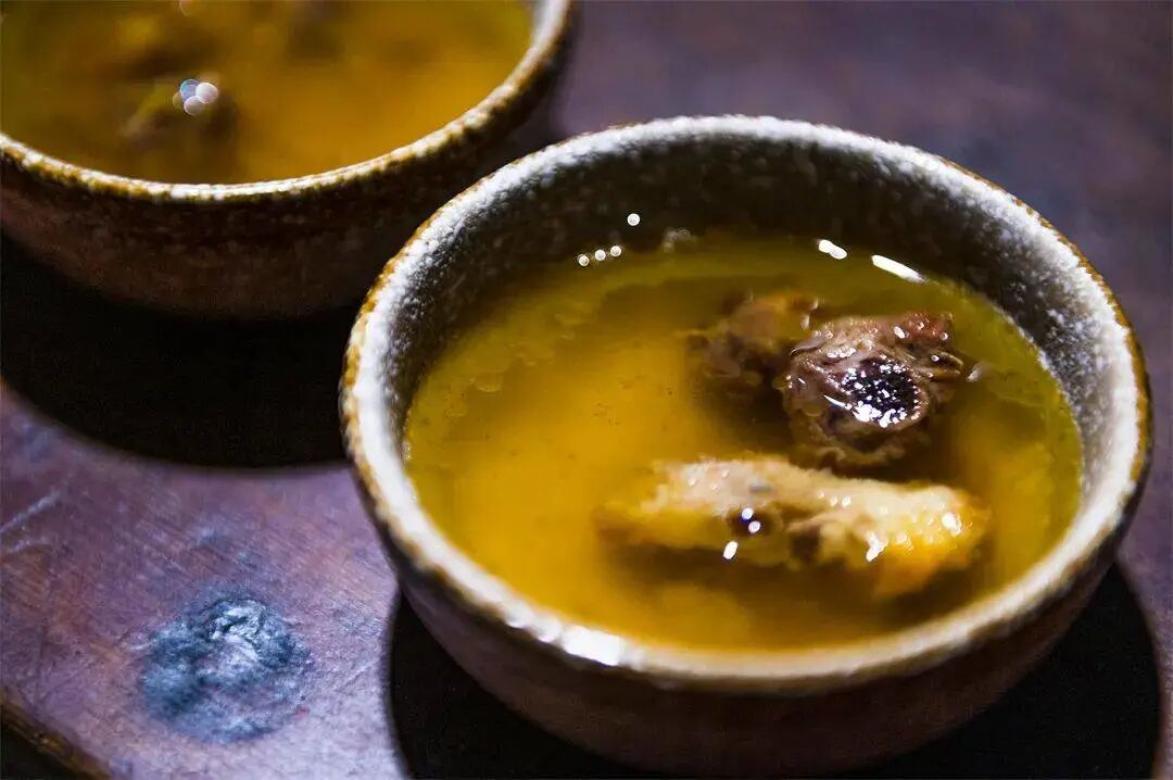 “侠拉”为怒语,意为“肉炒的酒”,这道菜相当于“漆油鸡”的升级版,用漆油、白酒与鸡焖制,以酒代水,酒味醇厚异香,鸡肉脆嫩味鲜,滋补健身。这道菜似乎考验的是食客的酒量。