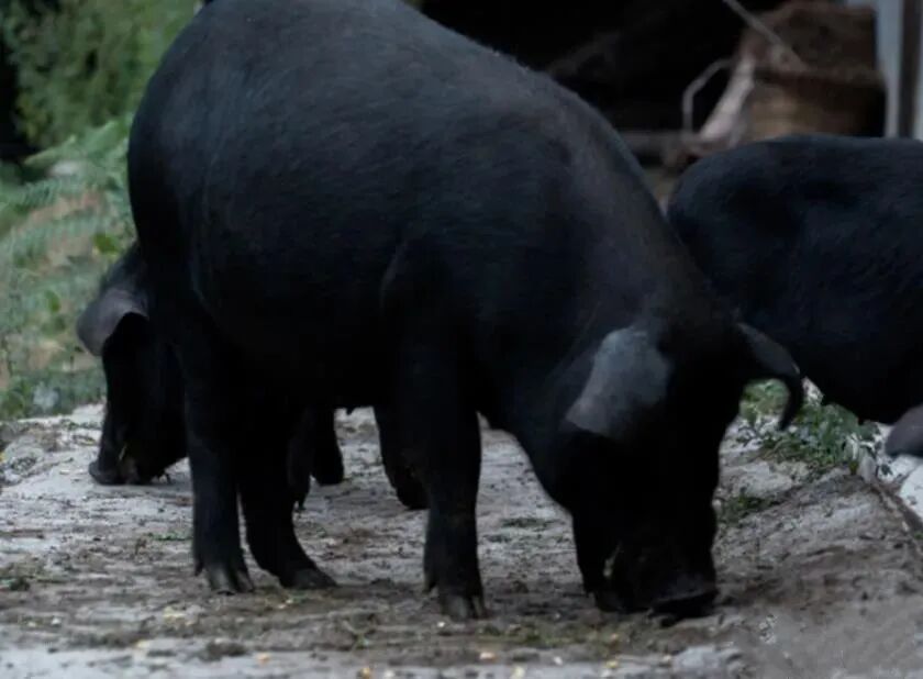 老窝当地的“高黎贡山黑山猪”当是老窝火腿制作品质的保证,这里的小猪以放养为主,补饲少量玉米、绿菜、野菜。养满2年后的土猪,肉质细腻紧实、脂肪均匀,是制作火腿的最佳选择。