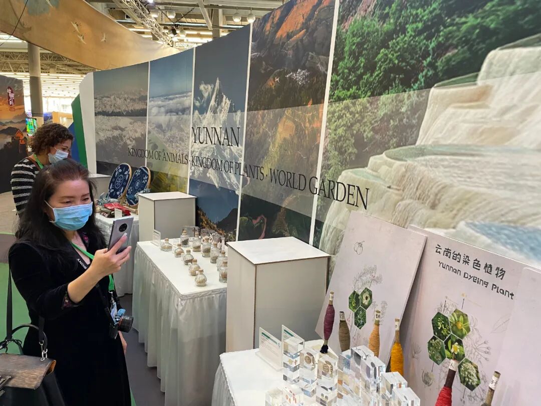 据COP15云南省筹备办常务副主任程伟平介绍,具有浓厚云南特色的彝族“海菜腔”已多次唱响会场,并赢得满堂彩;每天定时进行的普洱茶茶艺表演,吸引了不少与会者驻足观赏与品尝。展品方面,云南展区共展示了永生花、普洱茶、种子银行、染色植物标本、扎染、动植物主题明信片等体现云南生物多样性及文化多样性的特色展品,引起许多嘉宾的兴趣。