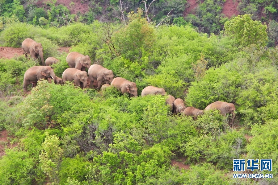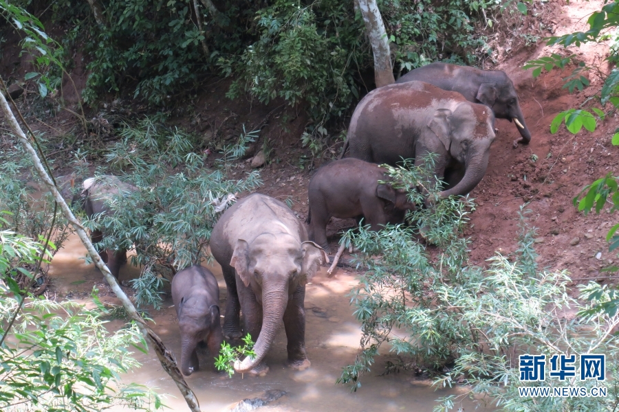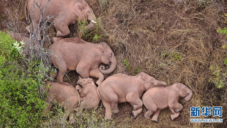 “短鼻家族”北上南归途中留下的影像(2021年7月17日摄)。新华网发(云南省森林消防总队 供图)