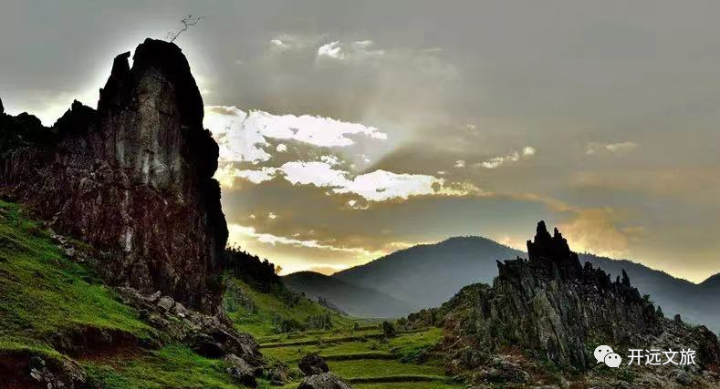 座落于开远市东南部,距大庄坝18公里,海拔2775.5千米,是彝族支系仆拉同胞聚居地,这里怪石嶙峋、林木繁茂,奇峰竞秀,一片片石林形态万千,气势磅礴。在天晴时,花一个早上的时间,算是在这里做了一次短途的徒步旅行。