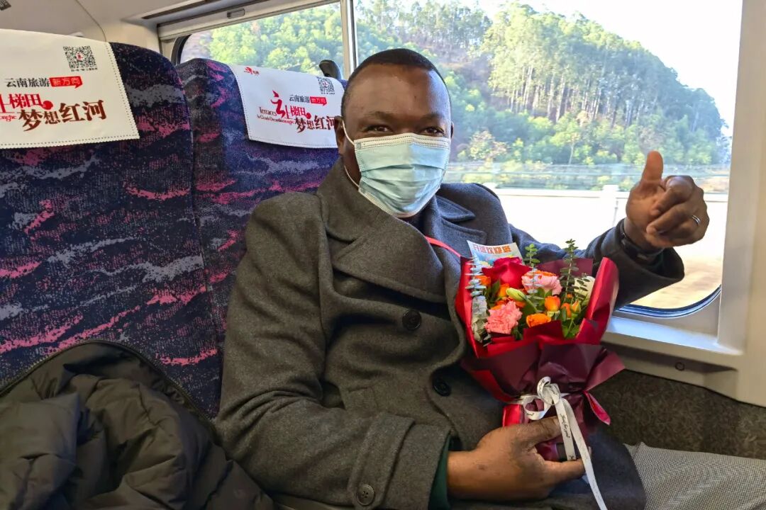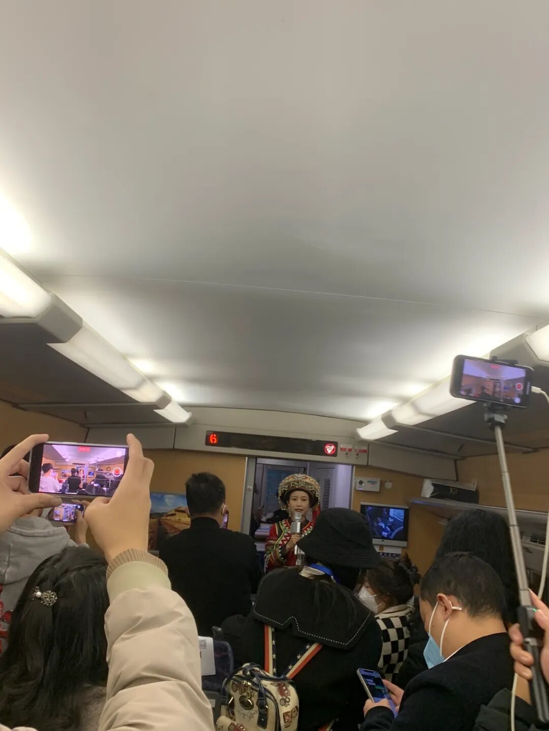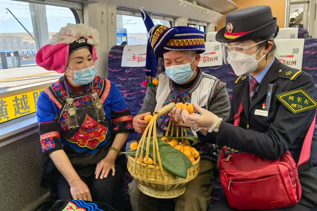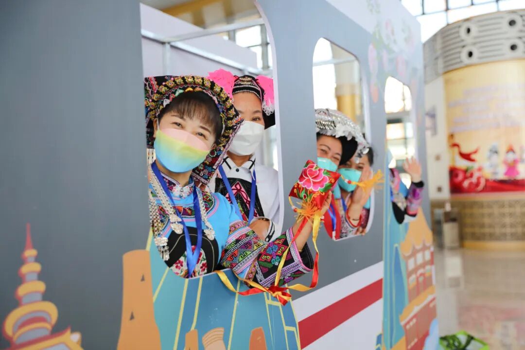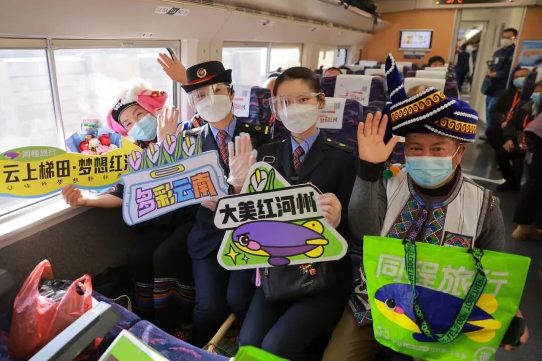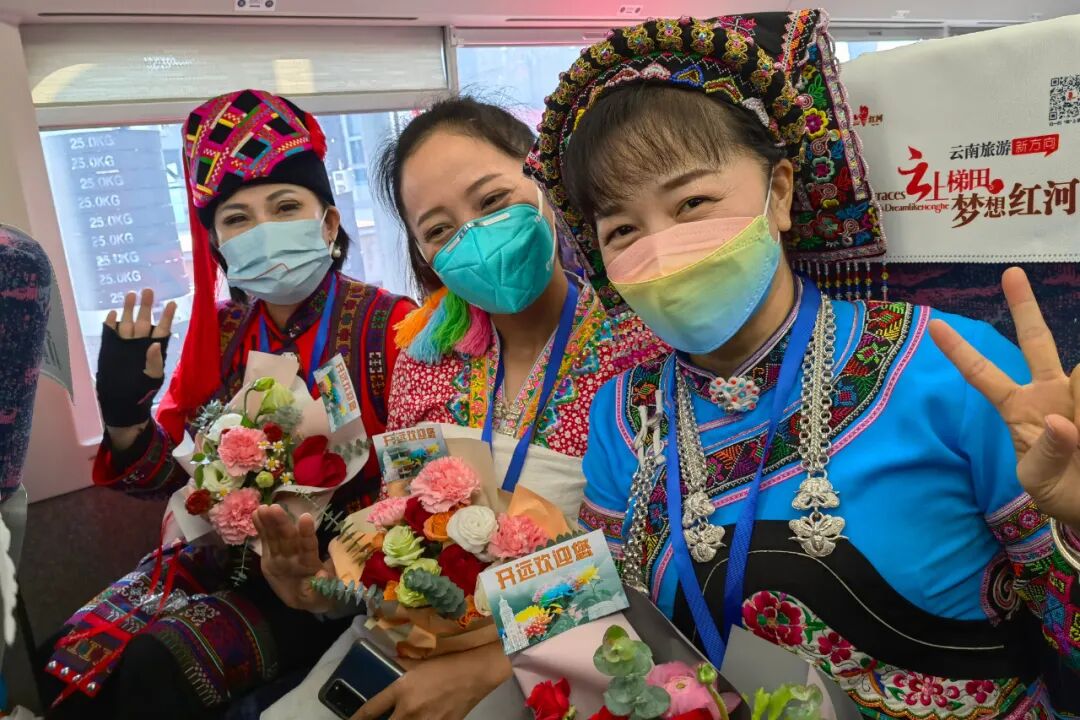 此外,红河州文化和旅游局还组织文艺工作者为首批旅客献上民族特色歌曲,一路欢歌中,进一步加深游客对红河州的印象。