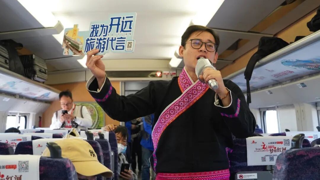 在当天开行的列车上,红河州还充分利用好旅游列车这个大外宣平台,积极向广大游客及媒体记者,宣传文旅资源、特色产品、招商引资项目等。