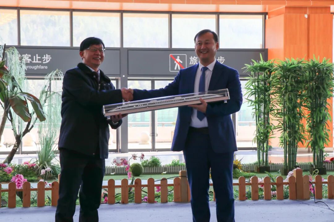 昆明活动现场,与会嘉宾共同启动了红河州旅游列车首发仪式,中国铁路昆明局集团有限公司向红河州赠送了旅游列车定制模型。