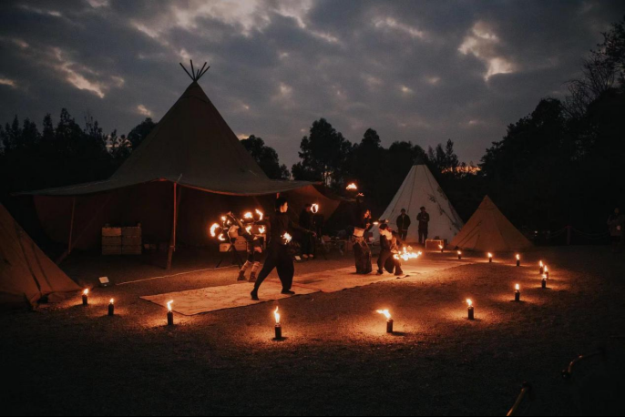 夜幕降临之时,落日营地中心的篝火被点燃,营地灯光被全部点亮,宛如夜空中的点点星光般灿烂。在嘉宾和游客的欢呼与掌声中,牧野拾趣·阳宗海自然教育基地宣布正式开园,为热爱自然与生活的人们带来非同一般的营地休闲体验。