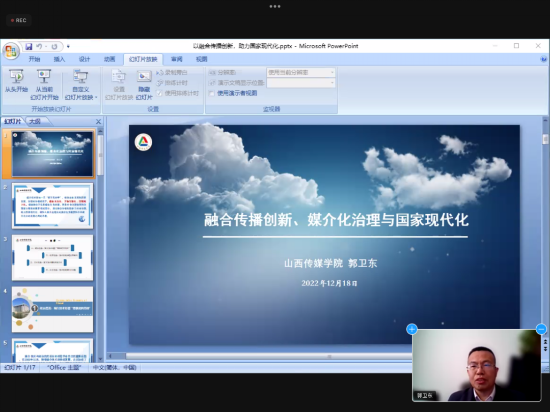 二、山西传媒学院教授、副校长郭卫东作题为《融合传播创新、媒介化治理与国家现代化》的报告。