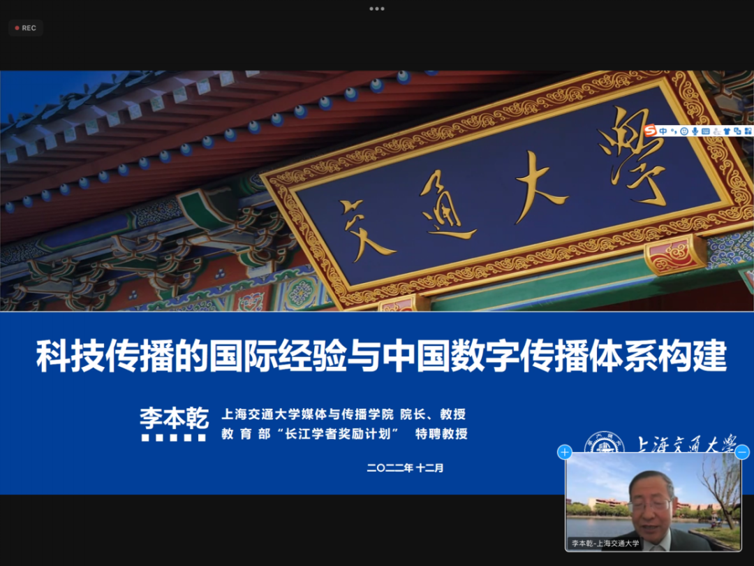 一、上海交通大学媒体与传播学院教授、院长李本乾作题为《科技传播的国际经验与中国数字传播体系构建》的报告。