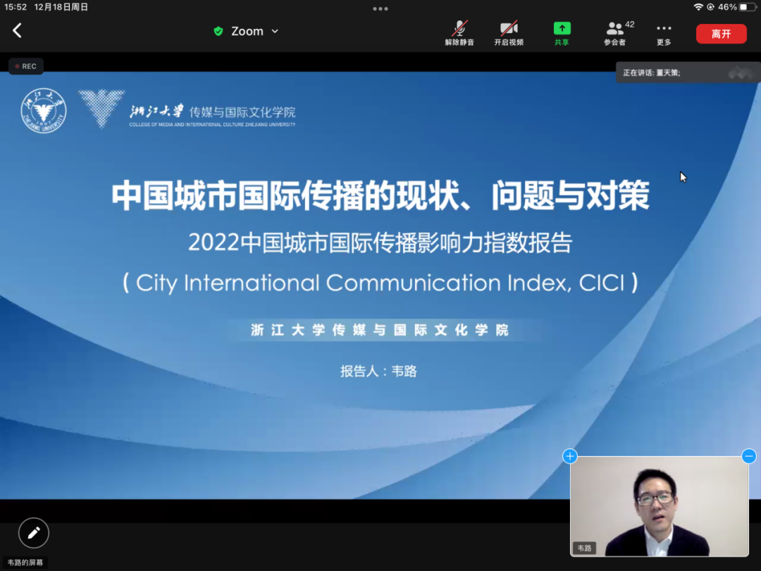 七、浙江大学传媒与国际文化学院教授、院长韦路作题为《中国城市国际传播的现状、问题与对策》的报告。