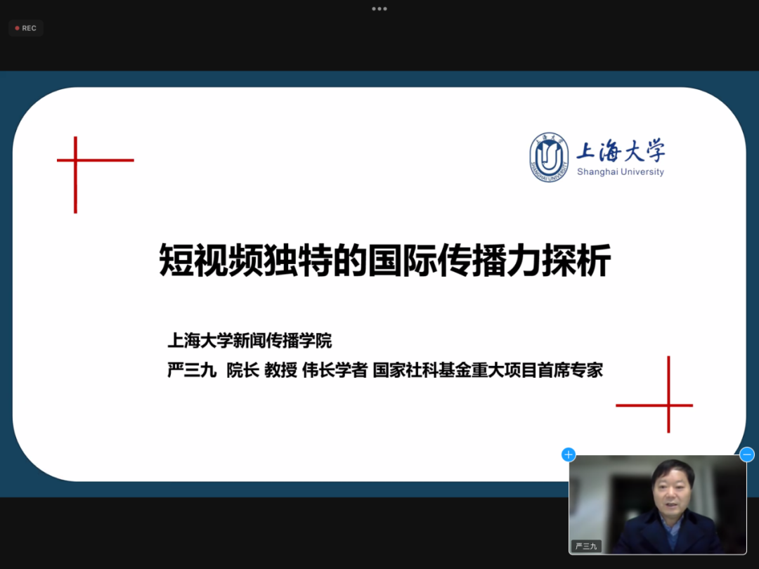 四、上海大学新闻传播学院教授、院长严三九作题为《短视频独特的国际传播力探讨》的报告。