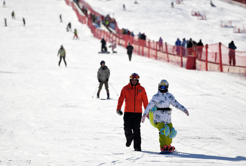12月28日,在北京渔阳国际滑雪场,市民(前右)练习滑雪。新华社记者 任超 摄