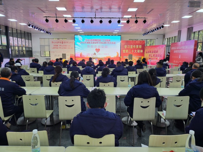 12月29日,由云南省总工会、红河州总工会、开远市总工会主办的学习宣传贯彻党的二十大精神暨全国法制宣传活动在开远市解化化工分公司举办,约100余人参加。