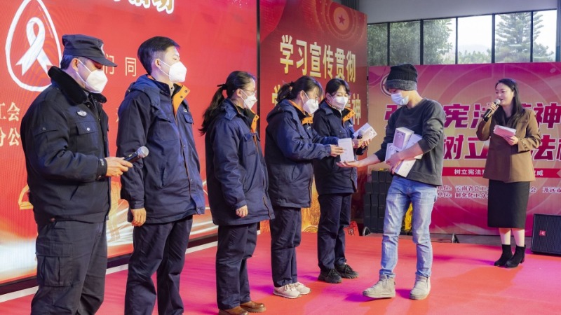 此次活动,通过宣讲、发放宣传资料、游戏互动、宪法宣誓、防艾签名等方式,全方位向企业职工宣传了党的二十大精神,普及预防艾滋病知识,弘扬社会主义法治理念。