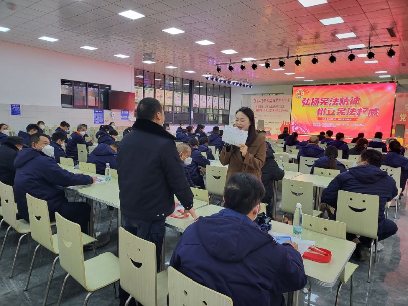 为提高职工的参与积极性,此次活动精心筹划,特地设置了党的二十大精神、宪法、《工会法》等知识互动环节,通过游戏互动、穿插舞蹈、歌曲节目等方式,增强宪法宣传的吸引力和感染力,让党的二十大精神、宪法知识深入人心。