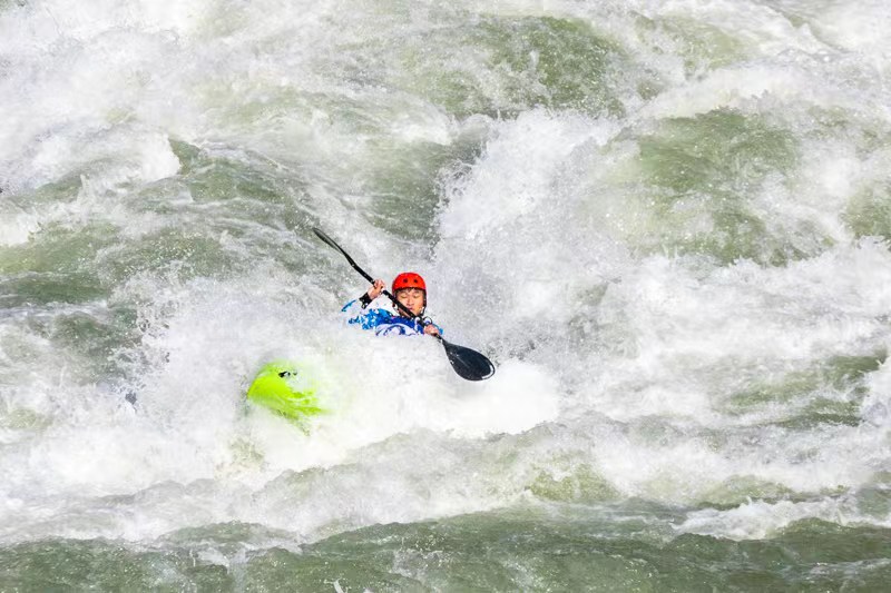 半小时后在路上遇到阳光又帅气的满鹏时,看着满脸开心笑容的他很是难以置信,“你刚才在怒江里翻船就一点不害怕吗?”他说:“不怕啊,很刺激。再说翻船对我们而言很正常。虽然船底朝上,人在水中,但只要人艇未分离,利用腰腹力量,用桨叶打水,就能让船迅速翻转过来继续比赛。”第一次参加怒江皮划艇野水公开赛的满鹏很兴奋,“我一直盼着来怒江,这是国内野水的天花板啊!今年终于圆了这个梦。今天对赛道不熟悉,到后天比赛时相信就能驾驭得很好了。”
