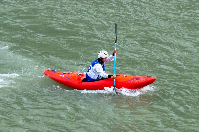 比赛开始,各组极限皮艇赛运动员在激流之中前行,艇与艇不断碰撞,手与桨不断磨合,速度与水流相互抗衡,打造出一场赏心悦目的视觉盛宴。4人橡皮艇中,各位运动员发挥出自己的优势,齐心协力,心向终点,劲往一处使,将团队的力量展现得淋漓尽致,也为第一天赛程画下圆满的句号。