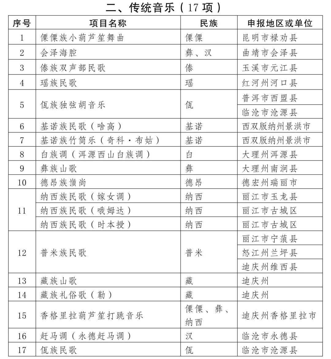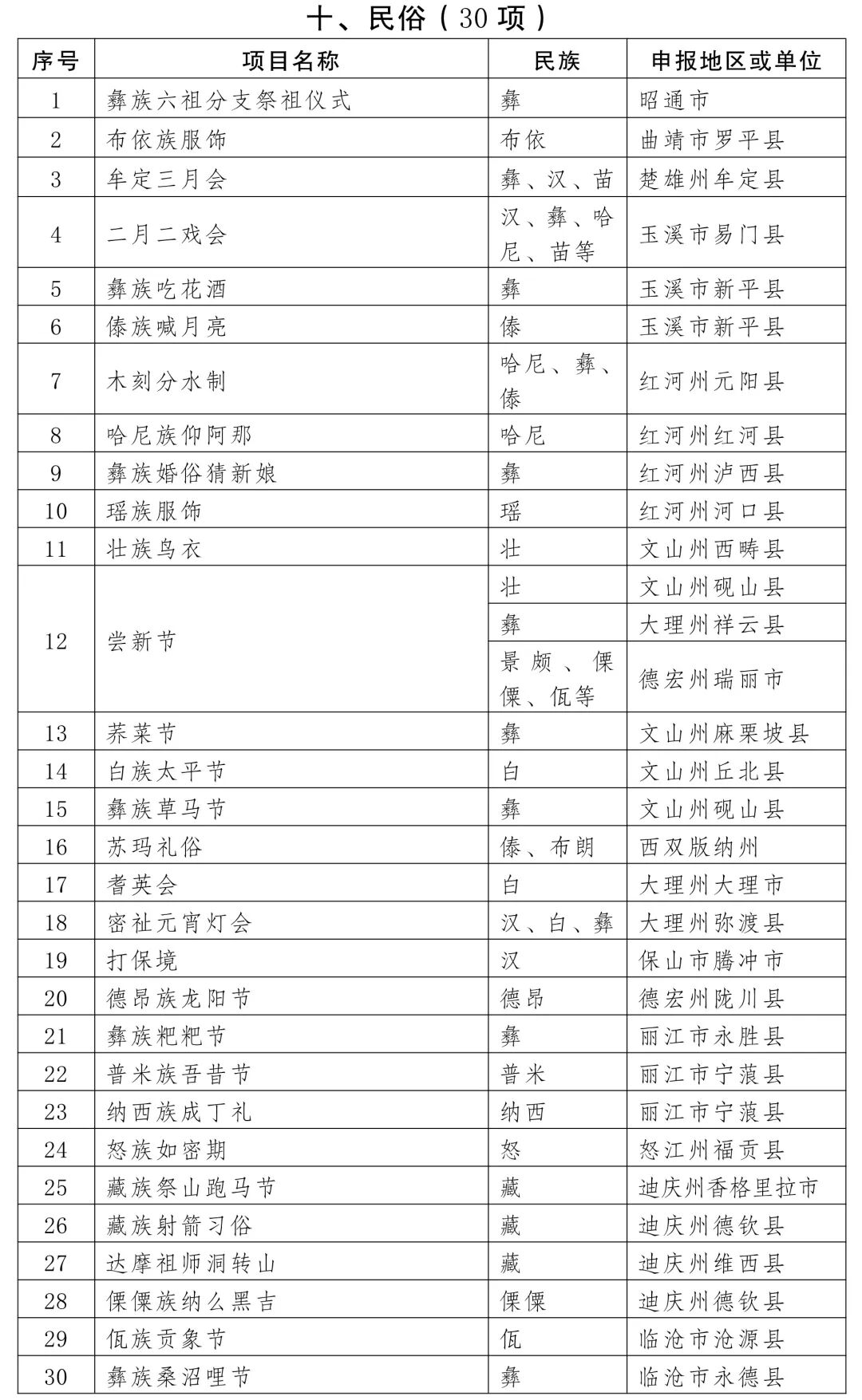 近日,云南省人民政府发布《关于公布云南省第五批省级非物质文化遗产代表性项目名录的通知》。