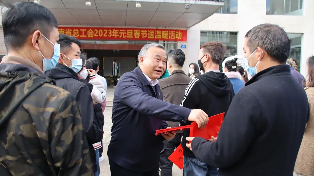 浓浓年味浓浓情,新春佳节来临之际,1月11日至12日,云南省总工会党组成员、副主席尚建明率慰问组到红河州开展“宣传贯彻二十大 工会温暖进万家”走访慰问活动。红河州政协党组副书记、副主席孔令清,红河州总工会、蒙自市总工会、石屏县总工会相关领导参加慰问活动。
