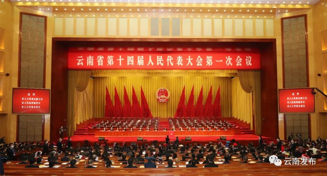 1月14日下午,云南省第十四届人民代表大会第一次会议在昆明举行第三次全体会议,选举产生新一届省级国家机关领导人员。