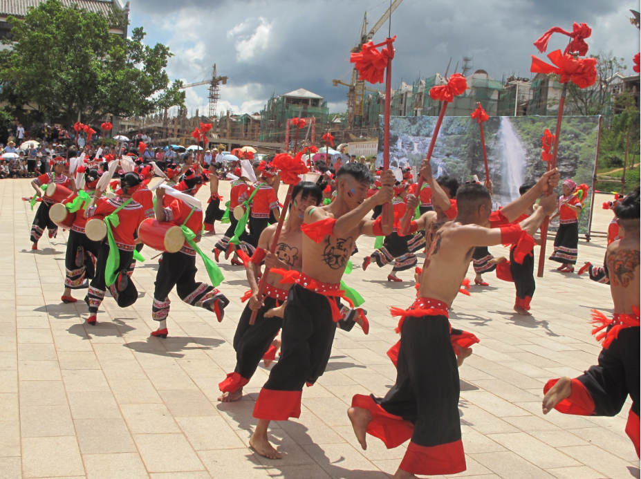 内容:举行花腰傣迎宾礼,展示花腰傣礼仪习俗、歌舞风情及傣雅、傣洒、傣卡三个支系花腰傣传统民族服饰。