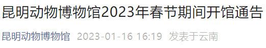 为确保2023年春节假期场馆安全运行,根据《国务院办公厅关于2023年部分节假日安排的通知》精神,结合我馆的工作实际,昆明动物博物馆于2023年1月18日至1月22日闭馆,进行场馆维护、标本熏蒸工作。