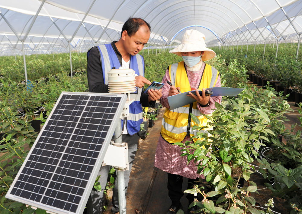 大数据“飞入”田间地头,农业生产经营管理越来越“智慧”。在宽敞明亮的大棚内,安装了气象监测仪,实时监测光照、温度、湿度。生产主管朱云辉在手机上打开水肥一体化微滴灌系统,轻轻一点,蓝莓盆栽内的4个滴灌头开始运行,水肥直达根系。“我们根据每天收集到的气象数据和基质进行排液数据,对灌溉溶液、滴水施肥的时间和数量进行适时调整,在手机或电脑上就可以操作。”朱云辉一边介绍,一边感叹说:“这是物联网技术给农业发展带来的新变化。”