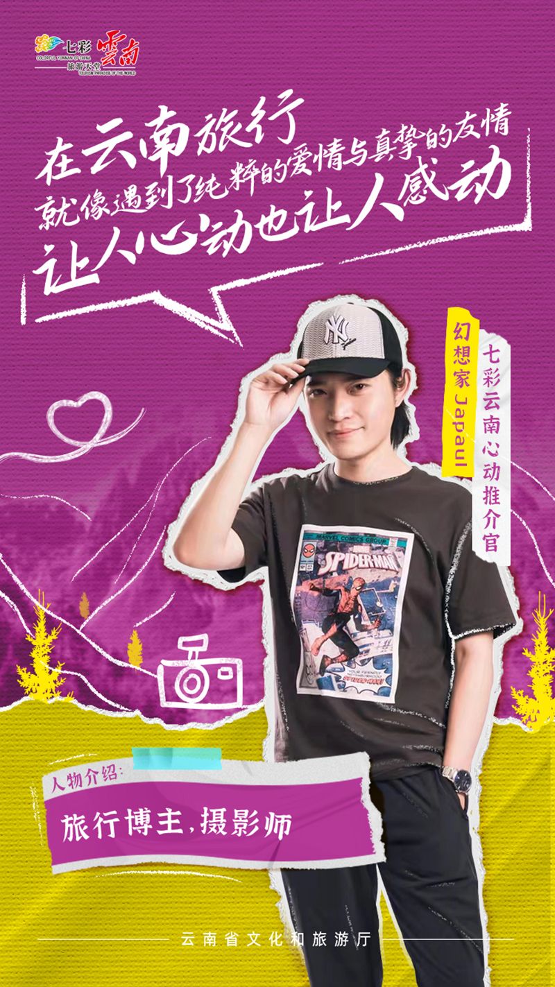 旅行博主、摄影师幻想家Japaul说:“云南就像是旅行者心中的心灵家园。在云南旅行,就像遇到了纯粹的爱情与真挚的友情,让人心动也让人感动。”