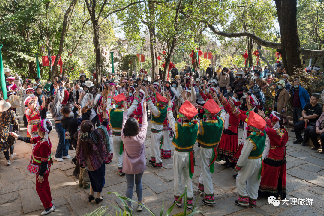 蝴蝶泉景区欢乐多,大理特色民俗文化表演让中国年其乐融融。蝴蝶泉景区是大理有名的爱情表白地,在这里,白族歌舞打跳、民歌对唱、绕三灵、接本主、非遗洞经音乐表演等,让春节期间的蝴蝶泉热闹非凡。