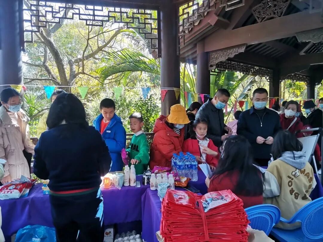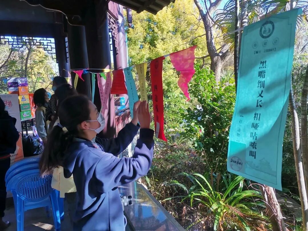 蒙自市图书馆在蒙自石榴公园举办迎新春、猜灯谜活动,字谜、地名谜、美食谜、成语谜……2000条谜题被悬挂在廊道两端,游客们猜出后还可以兑换礼品,充满了趣味。