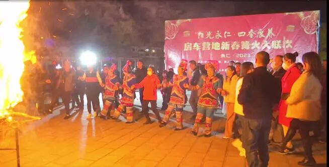 成都游客说:“家里的氛围很小,这里的很大。我们从来没有参加过这种长街宴,觉得很不错,永仁县委、县政府对我们很关心。”夜幕降临,篝火燃烧,广大市民和车友们手拉手,唱着歌、跳着脚,其乐融融篝火起舞大联欢,迎接吉祥如意癸卯兔年。