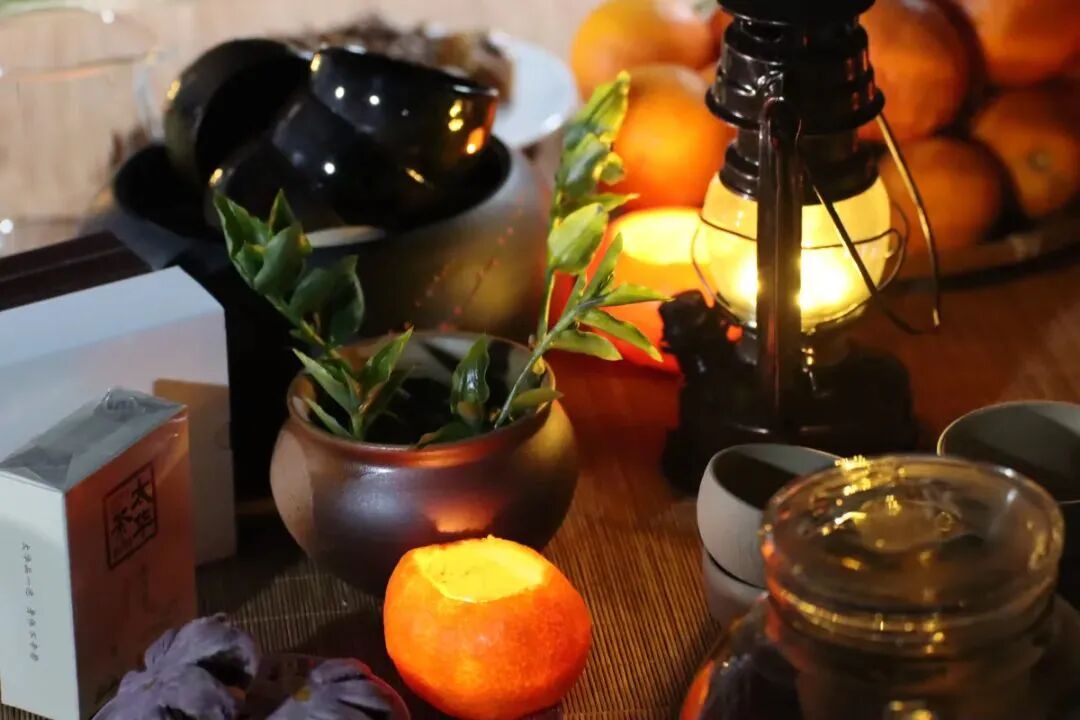 《徐霞客游记》原文摘录:明崇祯十二年(1639年)正月十五日日记:余以嗽故,卧迟迟,午方起。日中云集,迨晚而翳。余欲索灯卧,弘辨诸长老邀过西楼观灯。灯乃闽中纱围者,佐以柑皮小灯,或挂树间,或浮水面,皆有荧荧明星意,惟走马纸灯,则闇而不章也。楼下采青松毛铺藉为茵席,去卓趺坐,前各设盒果注茶为玩,初清茶,中盐茶,次蜜茶,本堂诸静侣环坐满室。