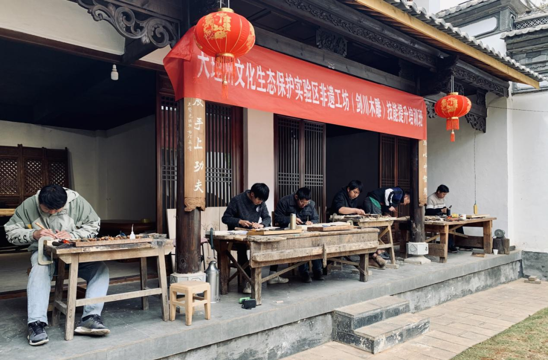 2020年,剑川嘉林木雕艺术有限公司依托国家级非遗代表性项目木雕(剑川木雕),设立剑川县嘉林木雕非遗工坊。