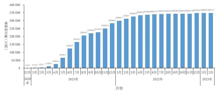 图5-1 分月新冠病毒疫苗累计接种剂次(数据来源于31个省(区、市)及新疆生产建设兵团报告)