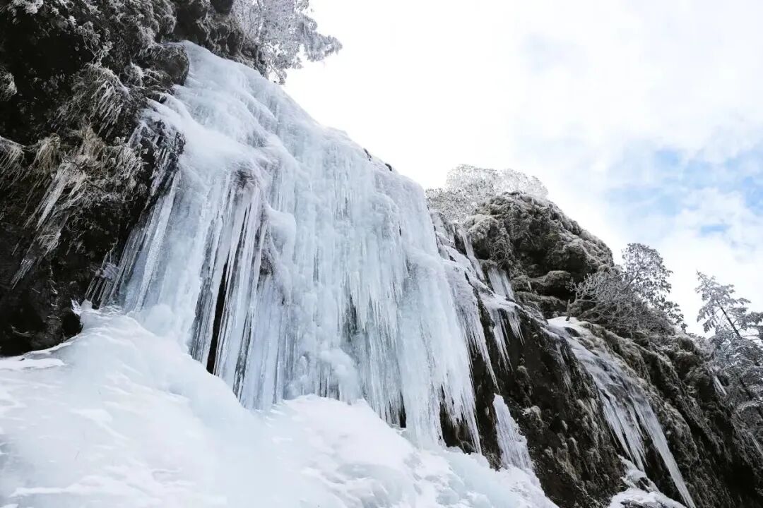 只见形态各异挺立的冰瀑