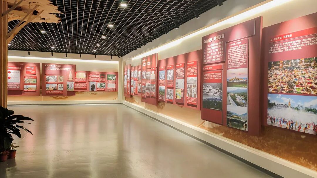西双版纳州铸牢中华民族共同体意识主题教育馆位于曼听御花园内,主题教育馆展厅面积达820平方米,共设序厅、根深叶茂休戚与共、百年锻铸风雨同舟、牢记嘱托赓续绵延、“一城两区”“象”往之地五个部分,通过图文、多媒体介绍等形式,全方位、立体化展示了西双版纳傣族自治州铸牢中华民族共同体意识的生动实践。
