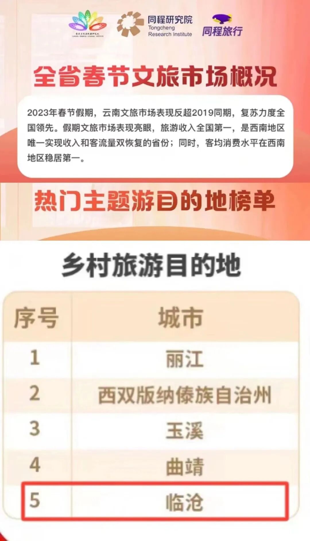 日前,同程研究院与云南省旅游规划研究院联合发布《云南地区2023春节旅游市场分析报告》。2023年春节,云南旅游市场表现亮眼,其中,乡村旅游尤为火爆。报告显示,临沧等5个州市位居云南省乡村旅游热门目的地前五名。