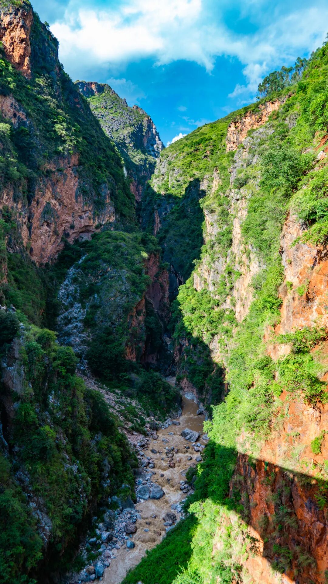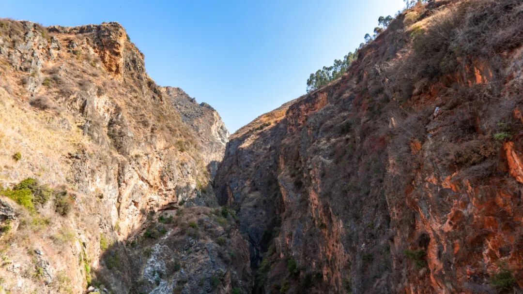 离开翠湖龙潭,经桥头河盟川桥,前行至石门关(龙门峡),只见两峰夹峙,一水中流,峭壁丹崖,灿若明霞,名曰红石崖。
