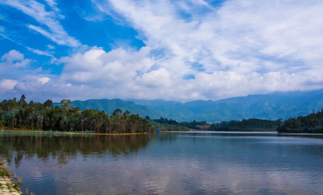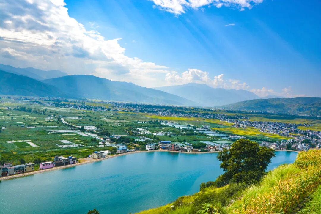 从西关山麓往北前行不远,驻足朝东北方向望去,只见沟壑纵横,田园锦绣,村庄散布,那就是明代永胜大地震的中心地带。此地大的河道有盐塘河、灵源箐河,小的箐沟有石牛箐、花园箐、马家坡箐,向西汇入地震天坑裂谷,原呈瀑布直下石门关,长年流入三川坝桥头河。20世纪50年代,此地兴修了盐塘河水库,又在灵源箐河上游兴修了羊坪水库,这里也就只有季节性河流了。