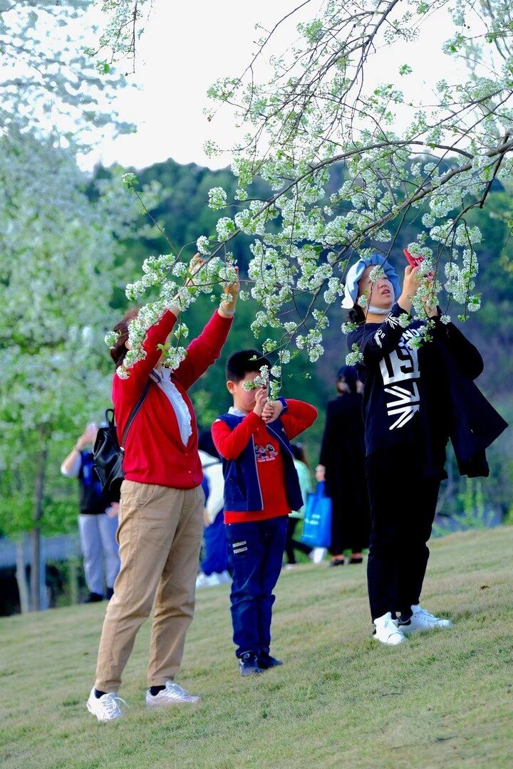 在南宁青秀山景区,洁白的豆梨如云似雪,吸引了不少游客前来踏春。“沙瓦迪卡!我现在在南宁的青秀山。看看我后面那一大片白色的花,多美丽!”来自泰国的电商主播卓冰月正拿着手机直播。在她的镜头里,豆梨、金鱼草、兰花、郁金香等五彩缤纷。