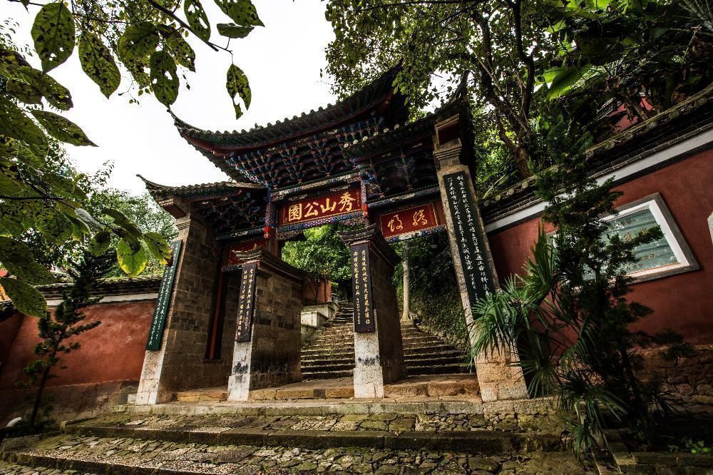 通海秀山公园,位于云南省玉溪市通海县城南隅,属全国重点文物保护单位、国家4A级旅游景区、省级风景名胜区、云南省科学普及示范基地。通海秀山在明朝时曾与昆明金马山、碧鸡山,大理的苍山共称云南四大名山,素有“秀甲滇南”的美誉。秀山上林木茂盛,有三元宫、普光寺、玉皇阁、清凉台、万寿宫、斗天阁、涌金寺、白龙寺等众多古建筑群和楹联,透出浓厚的文化气息。