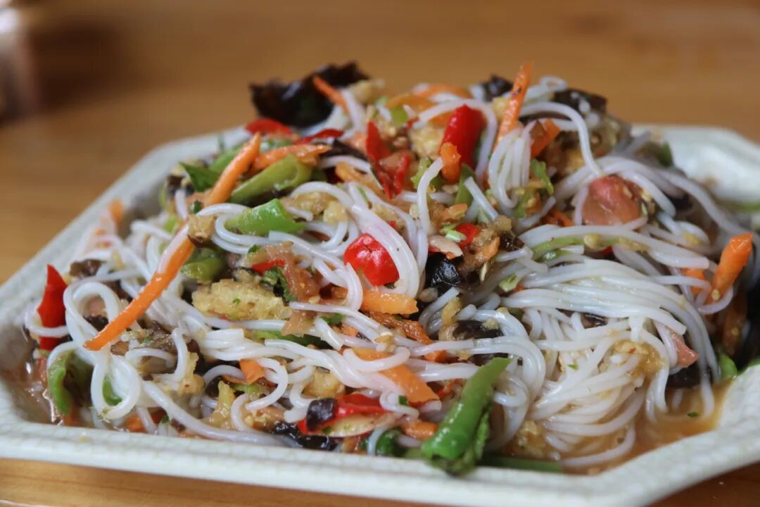 虽然带有“臭”字,但臭米线却一点都不臭,只是略带一点酸味,再搭配上一勺傣族手工豆豉、豆芽、酸腌菜、少许酱油,就能让食客大汗淋漓。不能论是早上、中午还是晚上,一碗热腾腾的臭米线,成为西双版纳人喜爱的一道暖心暖胃的美食。