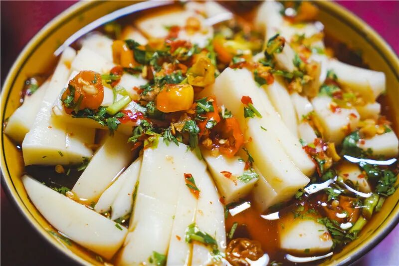 来到西双版纳,牛撒撇米线是当地人一定会推荐的美食之一。“撒”系傣语,汉语意为凉拌,“撇”则翻译为是苦肠,所以“撒撇”也就是苦肠水拌生的意思。牛撒撇制作方法繁琐,取料新鲜,是一道极其费时费力的美食,但也因“撒撇”独特的味道,劝退了一些食客,初尝牛撒撇,你会因它独特的用料而感到无从下口,但只要接受了第一口的苦味冲击后,你只需慢慢品尝几口后,便会觉得越吃越香。人们常说“良药苦口利于病”,而自带苦味的“撒撇”,也有着消暑败火的效果,夏天来临,本地人往往会点上一碗撒撇米线当做“下午茶”,酸辣入口,消暑解闷。