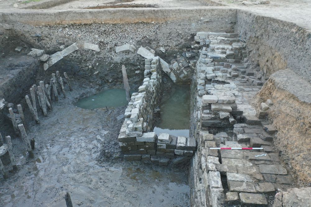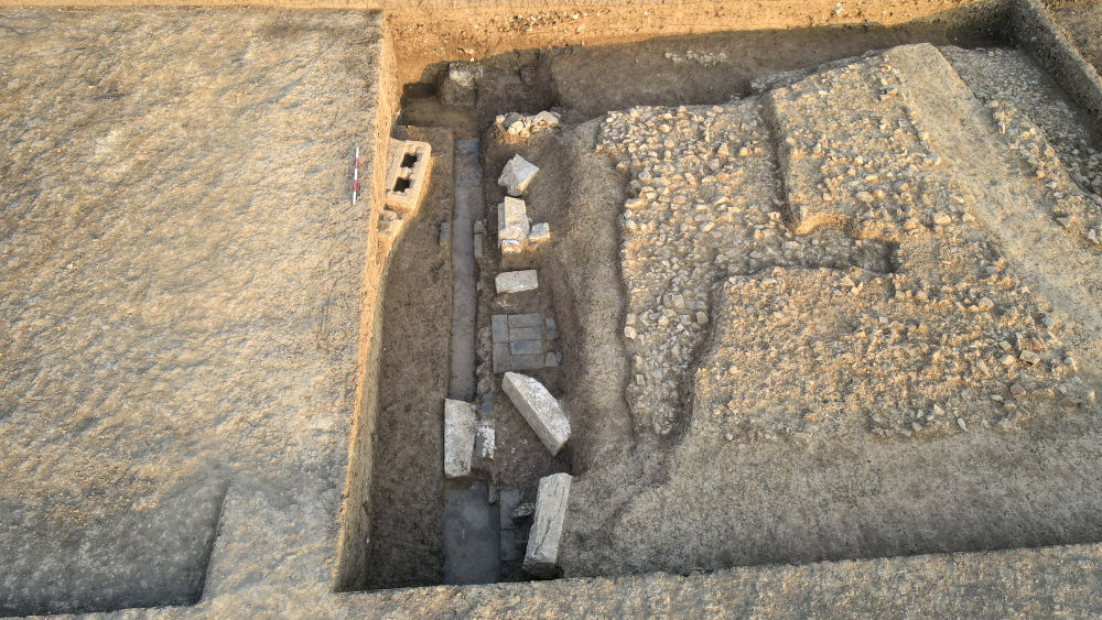 安徽凤阳明中都遗址内金水桥遗址发掘现场。安徽省文物考古研究所供图