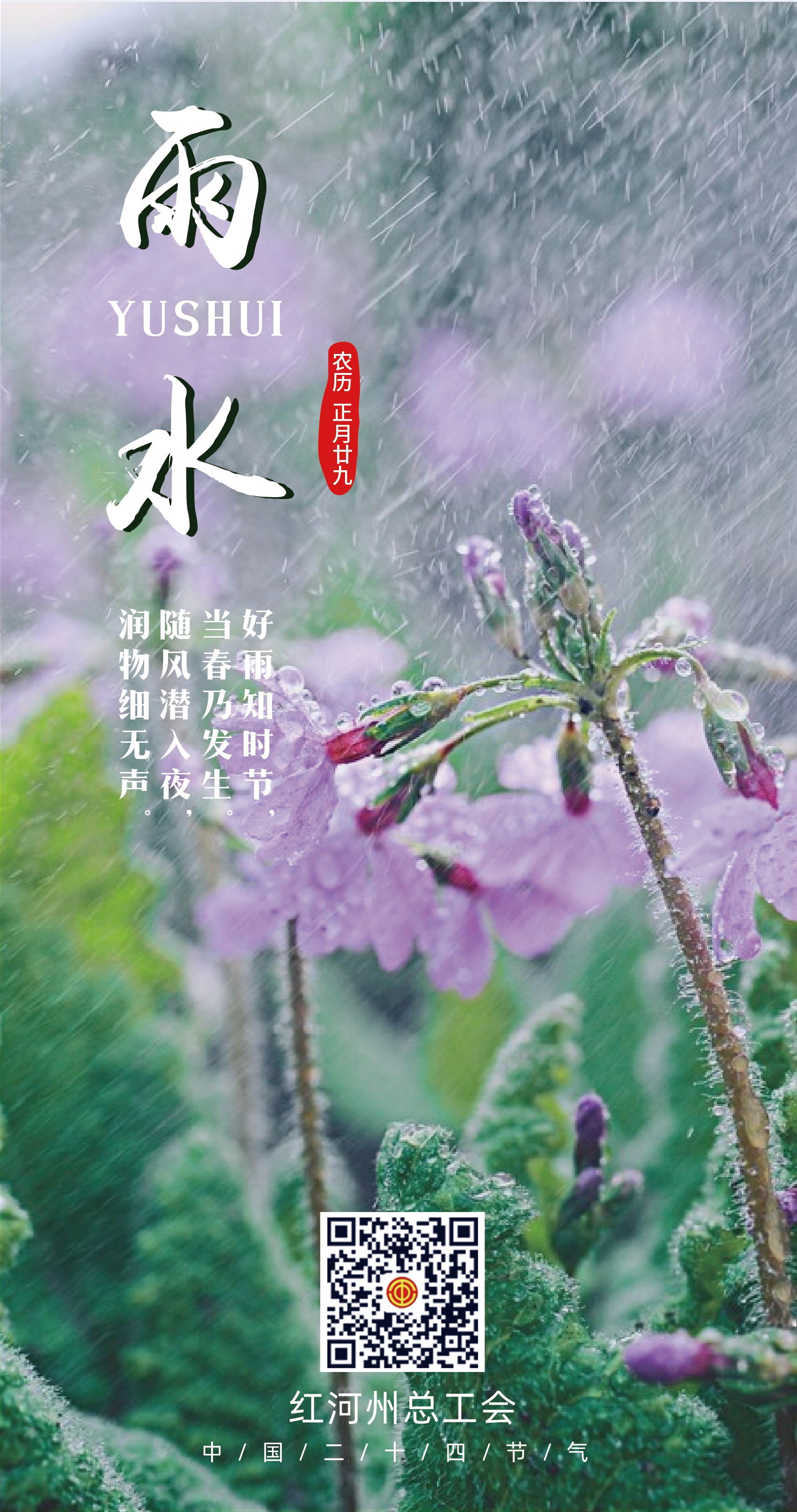 今日雨水丨雨水至 万物生 2023-02-19 13:07 0 今天6时34分 我们迎来春天的第二个节气 雨水 雨水润泽 万物生长 红河州总工会与您 一起迎接春天 愿您奋力向前 不负春光 文旅头条融媒体记者 普瑞玉 文 海报设计 郭磊锡 责编 王楚云 审核 华芳 陶江