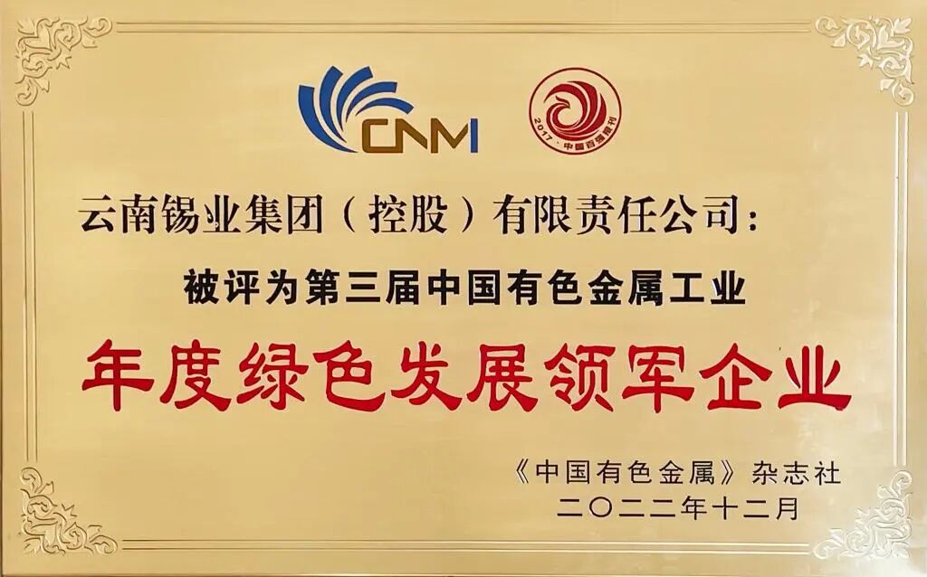 2月17日,由《中国有色金属》杂志社主办的“洞见趋势 引领未来”——第三届中国有色金属工业年度经济论坛在北京举行,云南锡业集团 ( 控股 ) 有限责任公司荣获“中国有色金属工业年度绿色发展领军企业”称号。