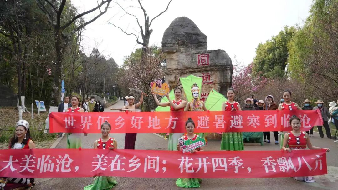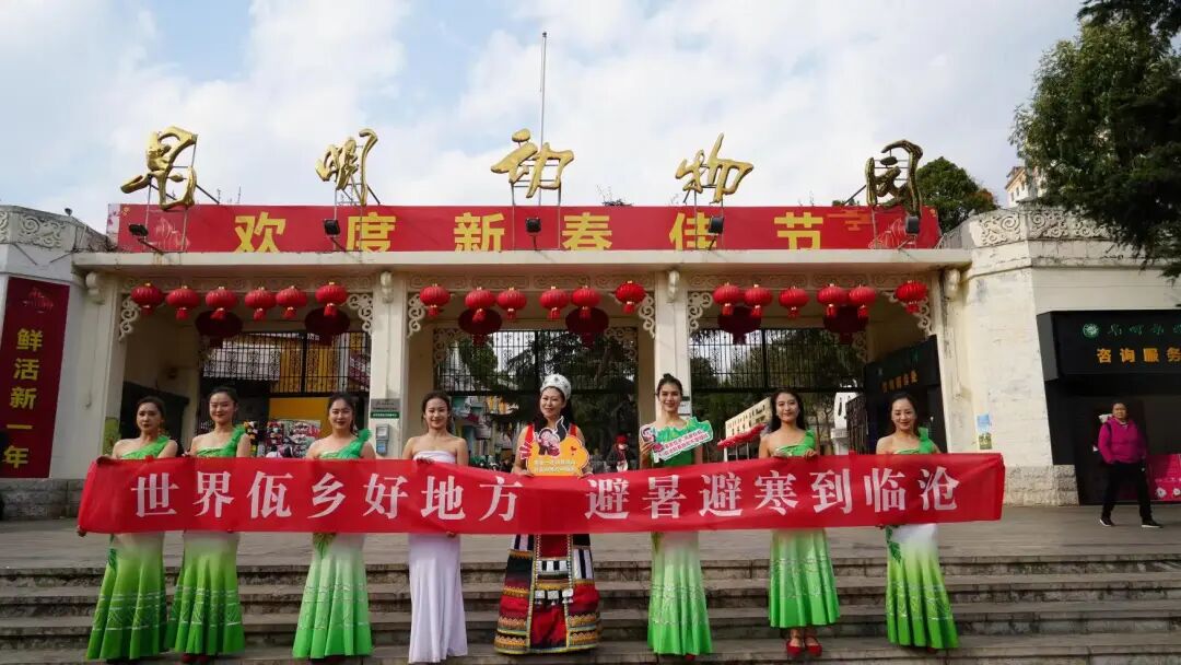 2月22日,云南陆军讲武学校、昆明动物园微风和煦,骄阳似火。一群身着窄袖短衫和彩色筒裙的临沧青年舞蹈演员,在昆明繁华的街头、景区掀起一阵“世界佤乡好地方,避暑避寒到临沧”的快闪宣传热潮。