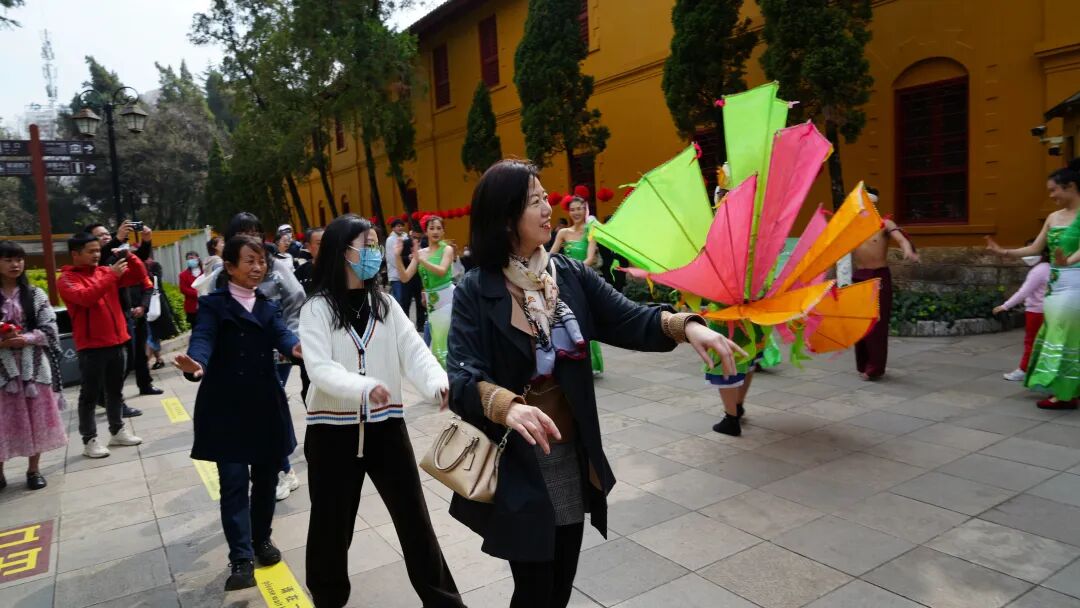 雨水节令已过,暖风吹开茶芽,两三阵春雨后,春回大地。临沧半城青山,满城阳光,一片郁郁葱葱鸟语花香,还有一个月,临沧的春茶季即将到来。为提高临沧旅游的知名度和美誉度,促进旅游业及有关产业快速回暖复苏,推动旅游消费、积极吸引市外游客,全方位展现临沧茶旅之绿美魅力,临沧市文化和旅游局组织12名舞蹈演员和歌唱演员,在昆明著名景区景点和繁华商业街道开展小规模、组织方式灵活的“快闪”艺术,为昆明市民和游客朋友们奉上“原汁原味”的临沧文化艺术精品快餐。