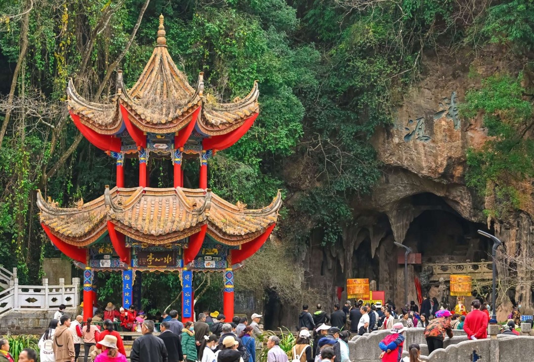 “二月二龙抬头”,云南省玉溪市易门县举行民俗文化旅游节,游客与市民一起观民俗、看大戏、舞祥龙、逛庙会,共度民间传统节日。