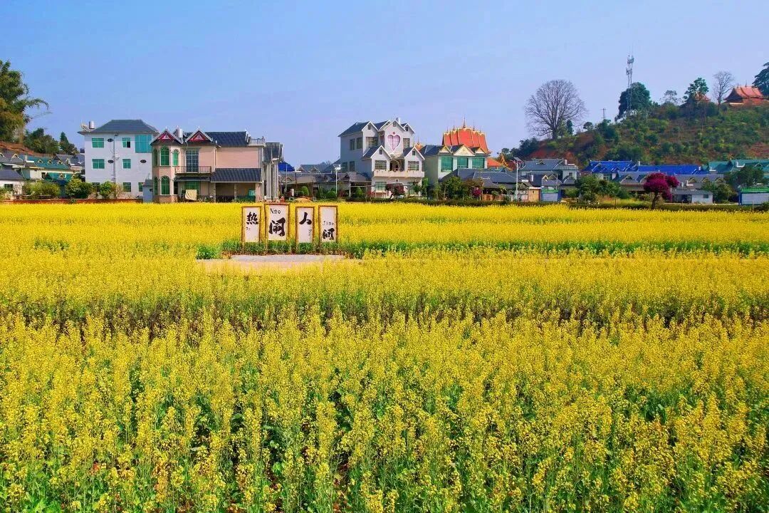近期,勐海县勐遮镇曼恩村曼拉小组田间地头已被大片金黄油菜花铺满。曼恩村曼拉小组是纯傣族聚居村寨,村中整齐排列的房屋在保留原有乡土风情的基础上,结合中西方乡村风情进行改建,让整个村寨看上去既有傣家元素,又显得十分时尚。放眼望去,盛开的油菜花与蓝天、白云、房屋建筑构成一幅精致、浪漫的农家景致,想要拍出春日田园大片,感受春天气息的市民游客不妨到此一游。