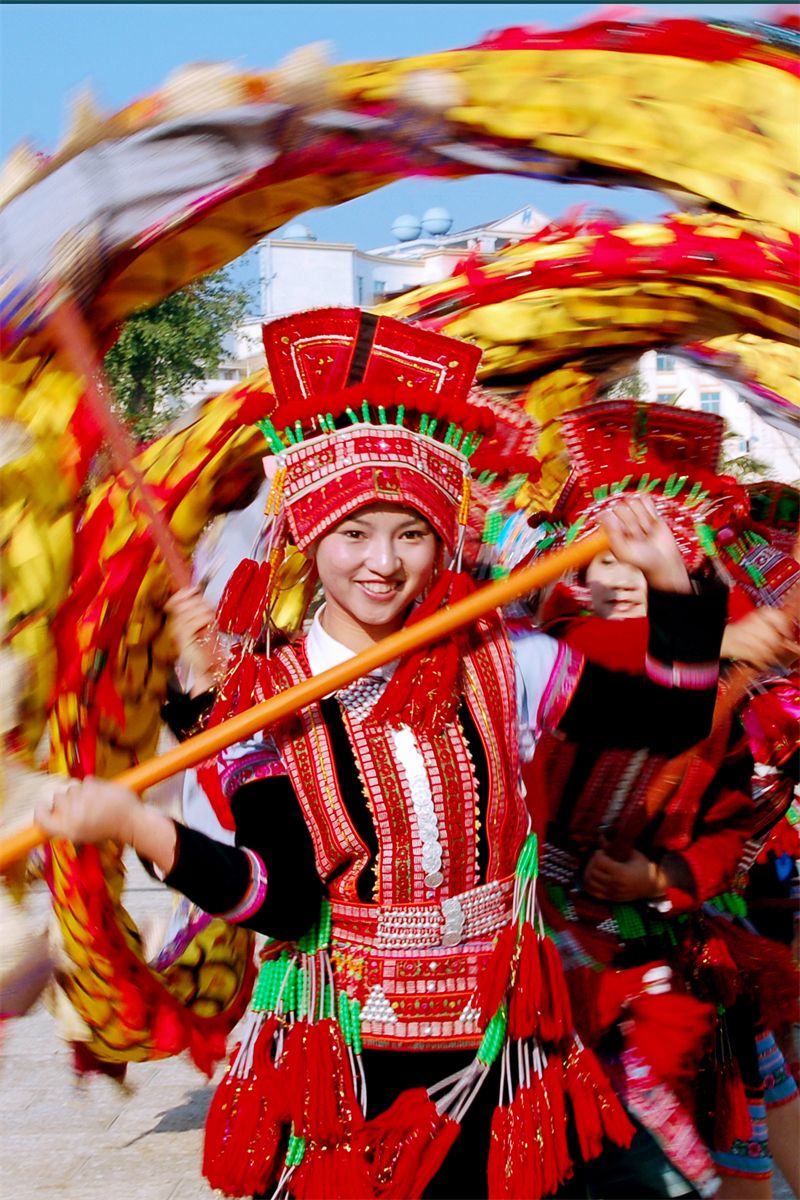 ▲花腰姑娘舞金龙,摄影/娄建伟
