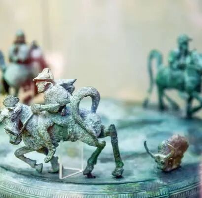 以三骑士铜鼓为代表的青铜器大多采用写实的风格,清晰再现了古滇国的风土风貌。它们不仅是珍贵的艺术品,更是记录了古滇国青铜文化的“史诗”。生活在现代的我们可以通过青铜器,一窥古滇国文化。